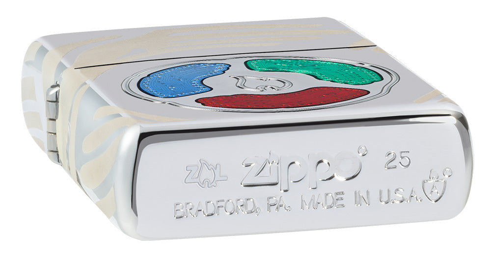 Zippo welcomed the new millennium in 2000 with the Keeper of the Flame Collectible. 25 years later, we’ve reenergized the theme with a Collectible of the Year that showcases Zippo’s incredible decoration capabilities. For the first time, our Deep Carve and Photo Image 360° processes are combined on an Armor® High Polish Chrome case with three colours of inlaid epoxy, which represent the qualities that solidify our claim as Keeper of the Flame: