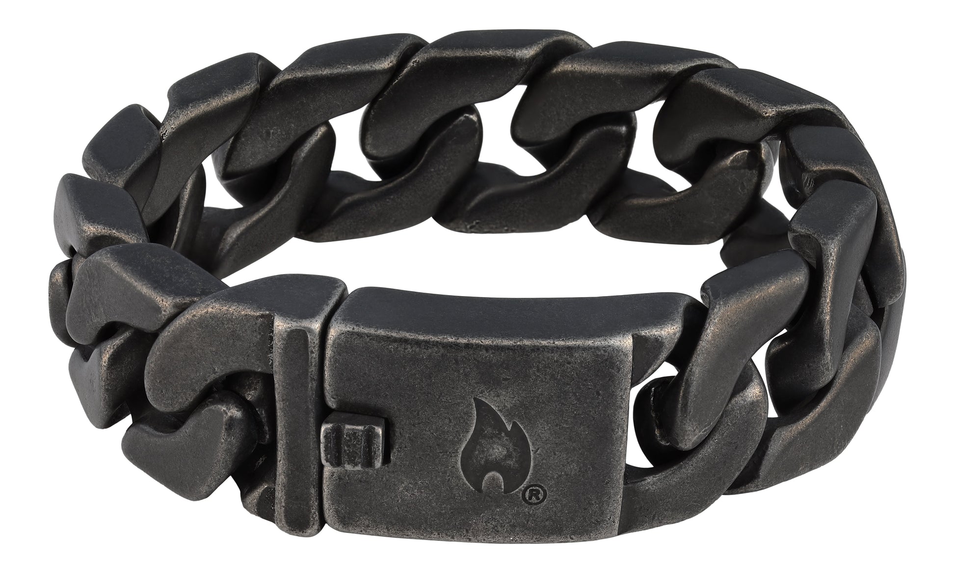 Stainless steel bracelet made of very large chain links with a sliding clasp. The inside of the clasp is decorated with the original Zippo logo, with the outside featuring the Zippo flame.