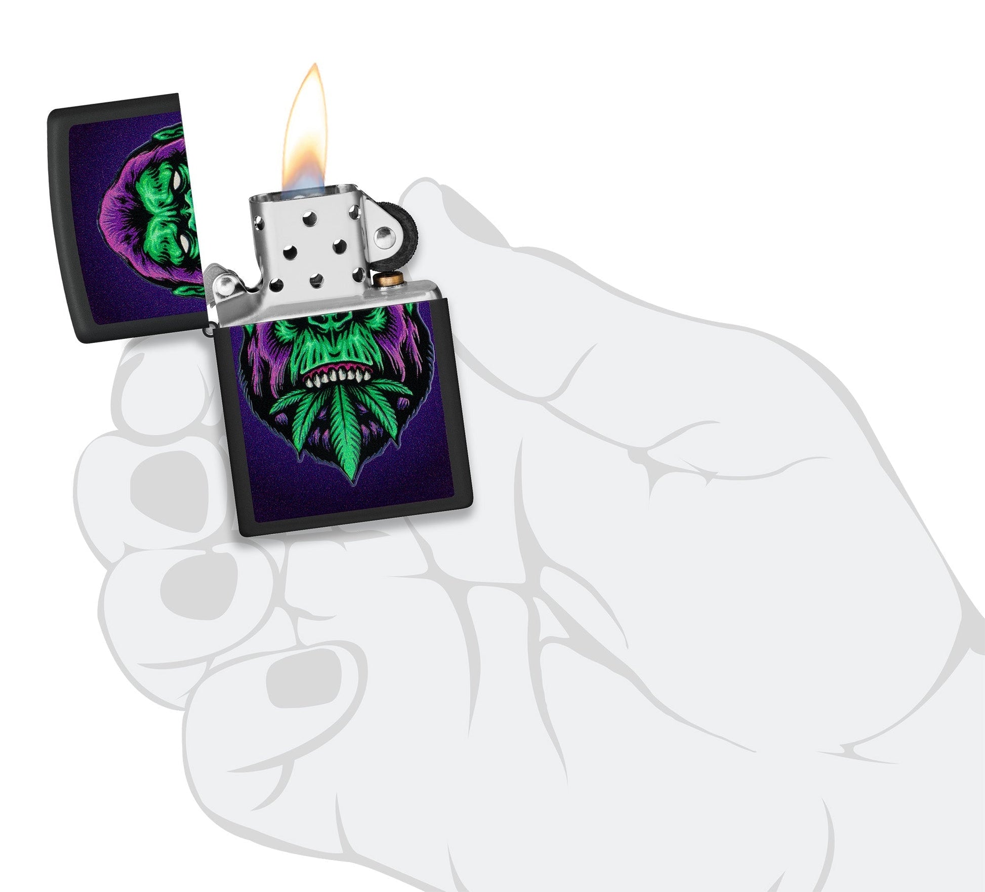 The fascinating cannabis gorilla glows under black light and attracts everyone's attention. This powerful image symbolizes strength, closeness to nature and a certain wildness. With its detailed coloring and glowing black light motif, the lighter offers an impressive display. The black light feature adds an extra dimension to the motif, while under UV light it comes to life with a mesmerizing glow. A real eye-catcher for anyone who appreciates the unique combination of art, nature and technology.