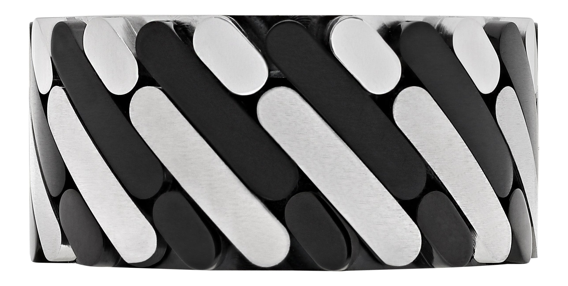 Express yourself with a Zippo accessory! Fine exclamation marks in black and silver are detailed on this stainless steel ring. The line is made of brushed steel and the dot is made of polished steel. A great match from this indestructible material. The rind also features the Zippo logo embossed on the inside.
