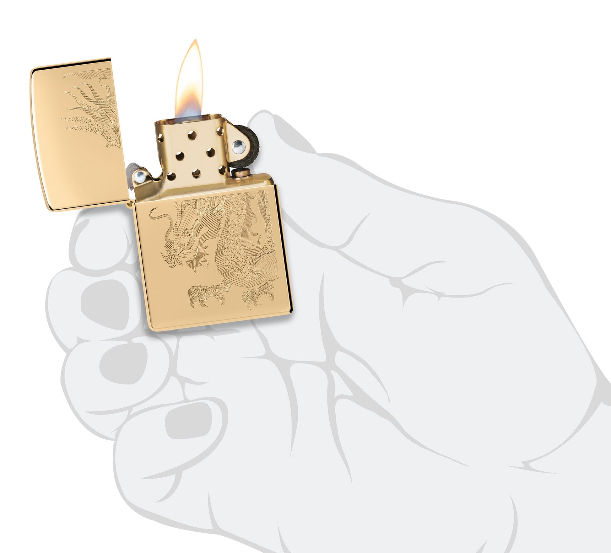 Symbolising power, strength and wisdom, a ferocious dragon stands fiercely on the surface of this classic High Polish Brass lighter in an intricate Auto Engrave design.