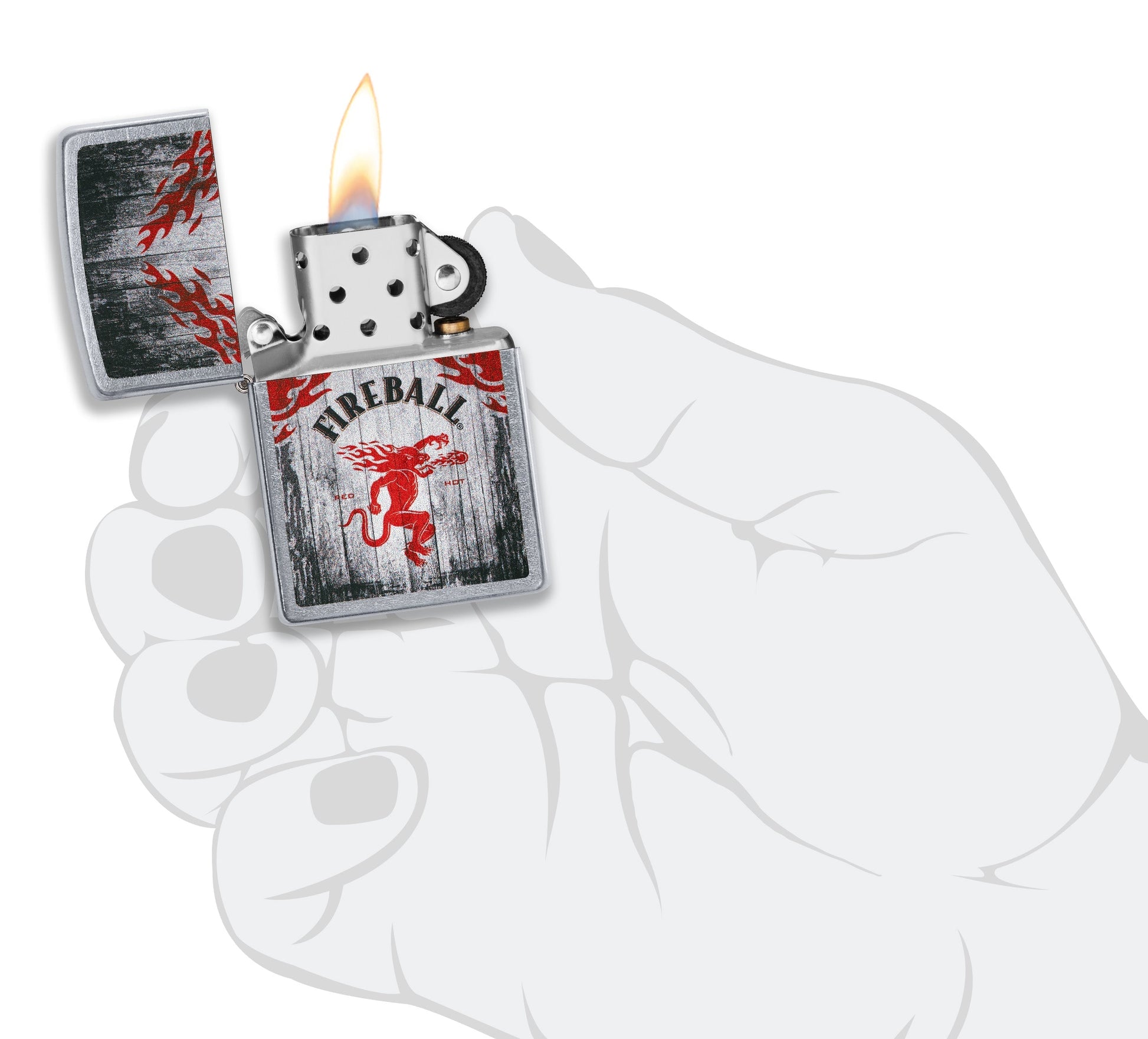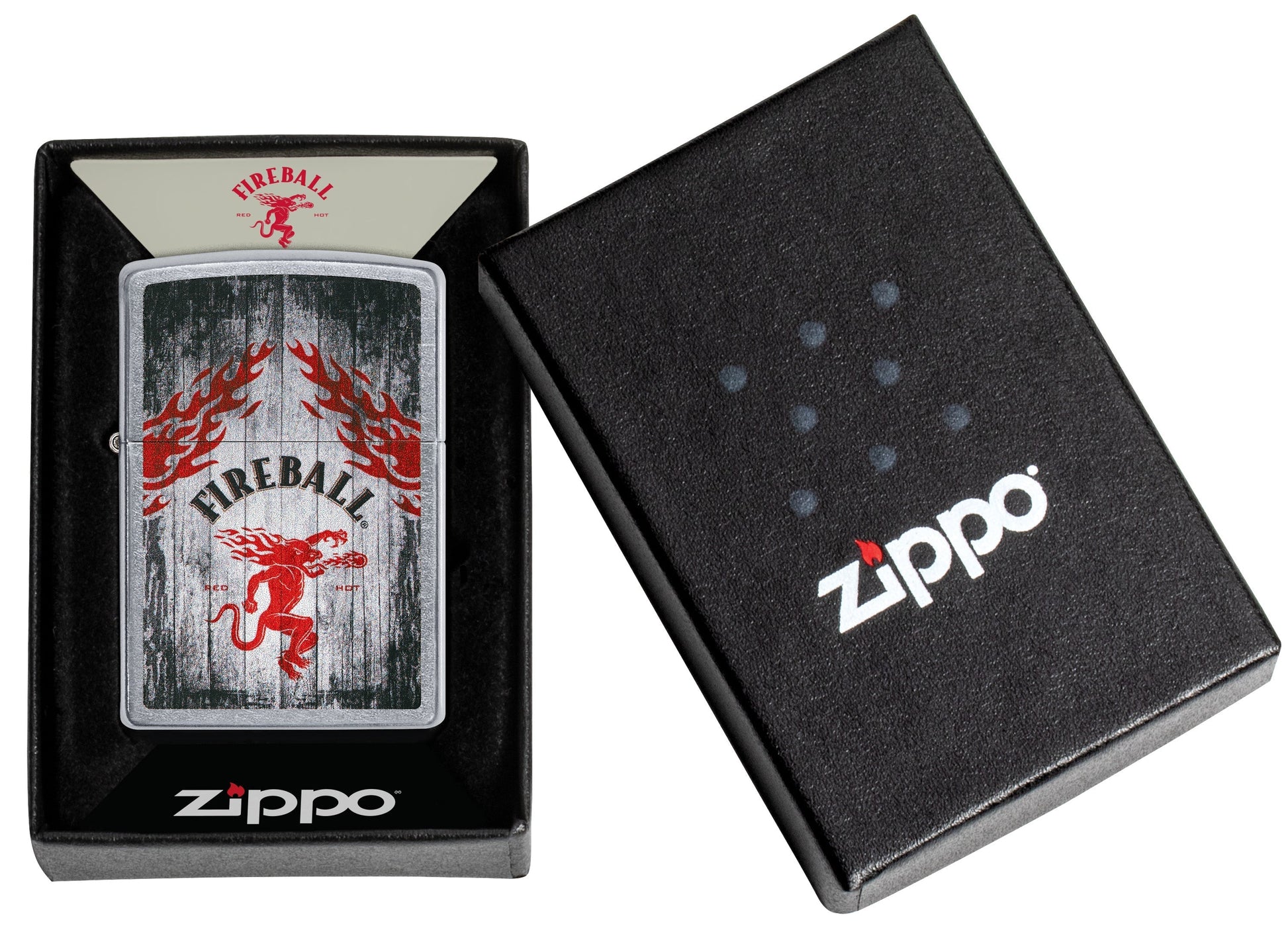 Add some heat to your pocket with this Fireball® Whisky Street Chrome lighter. The colour image design features the Fireball® dragon on a wooden board with the Fireball® logo and flames blazing above it.