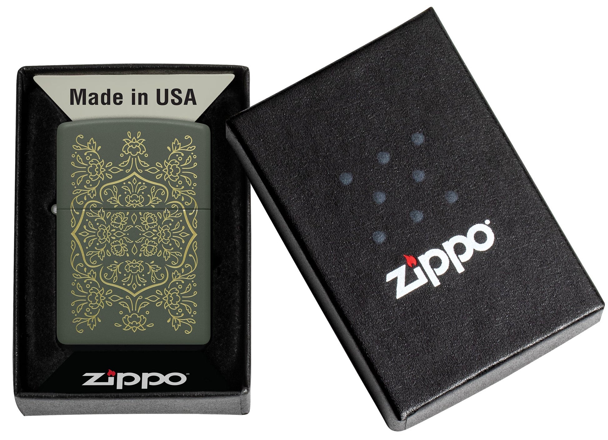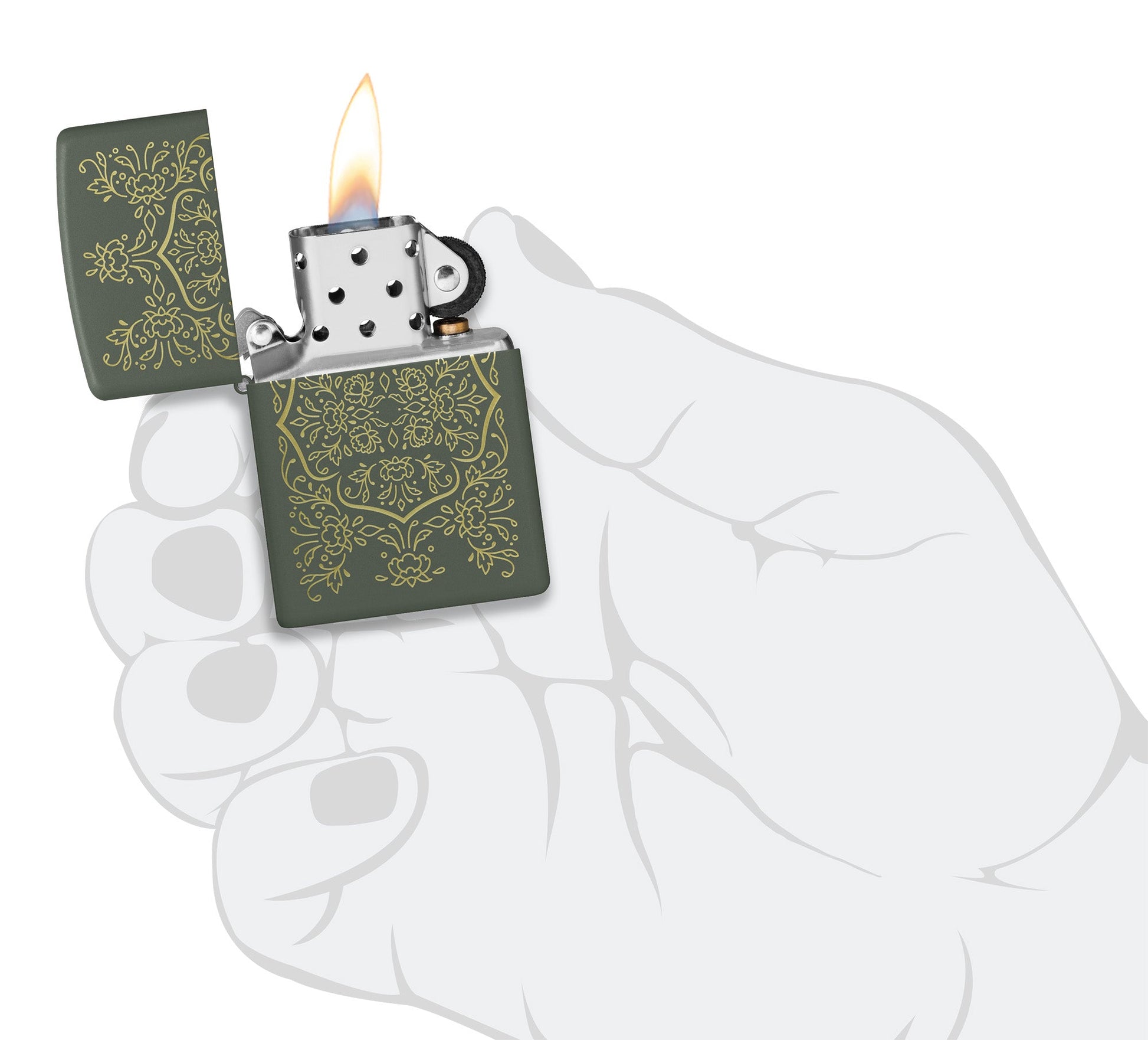 An intricate botanical motif sprawls across the surface of this classic Green Matte lighter in a stunning Laser Engrave design.