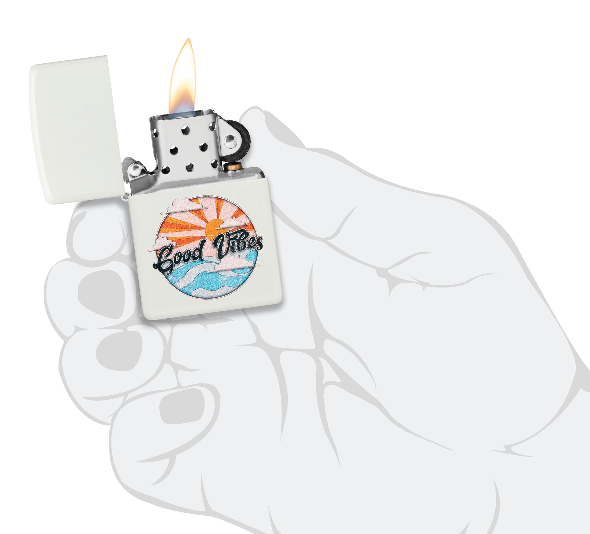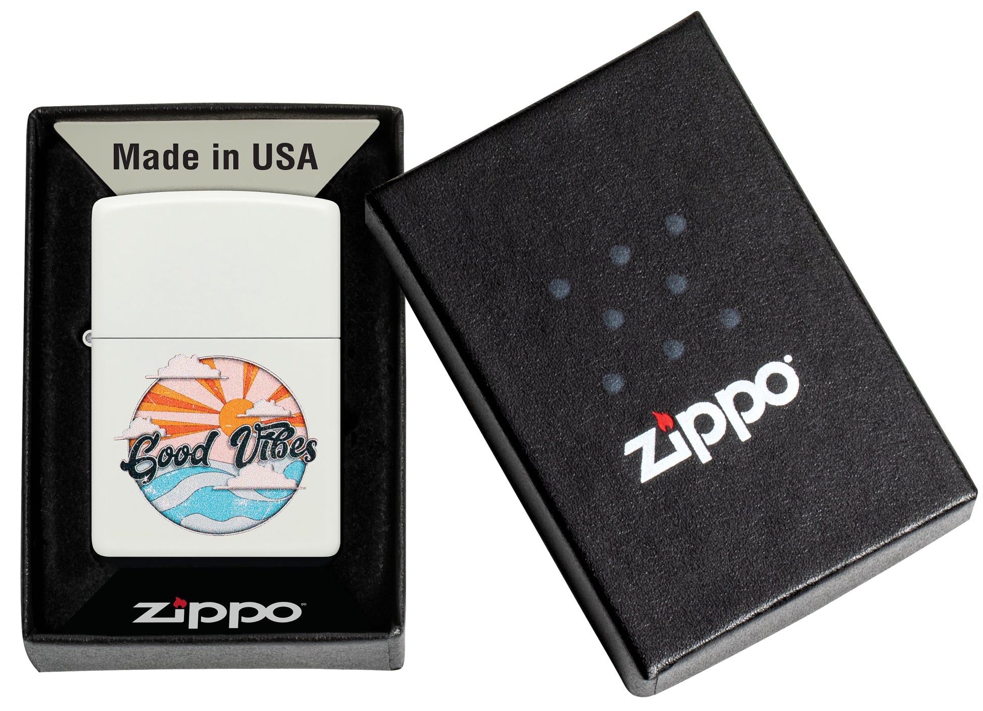- Genuine Zippo windproof lighter with the unmistakable Zippo "click".