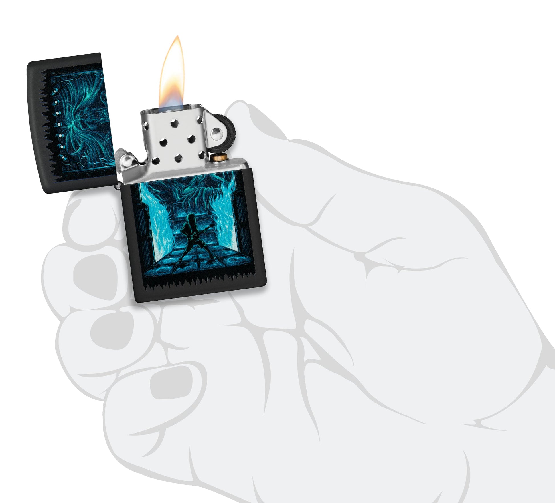 - Genuine Zippo windproof lighter with the unmistakable Zippo "click".