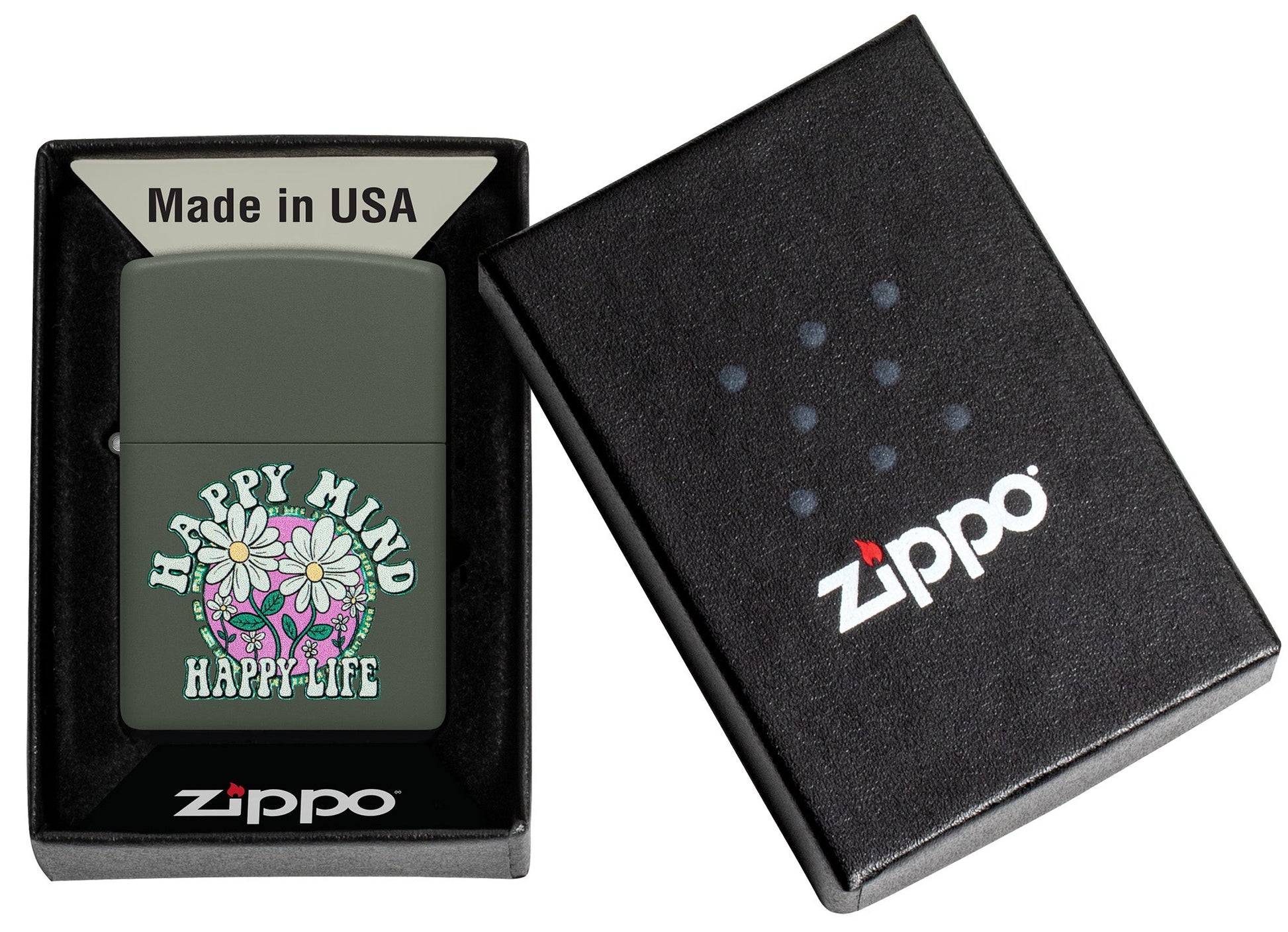 - Genuine Zippo windproof lighter with the unmistakable Zippo "click".