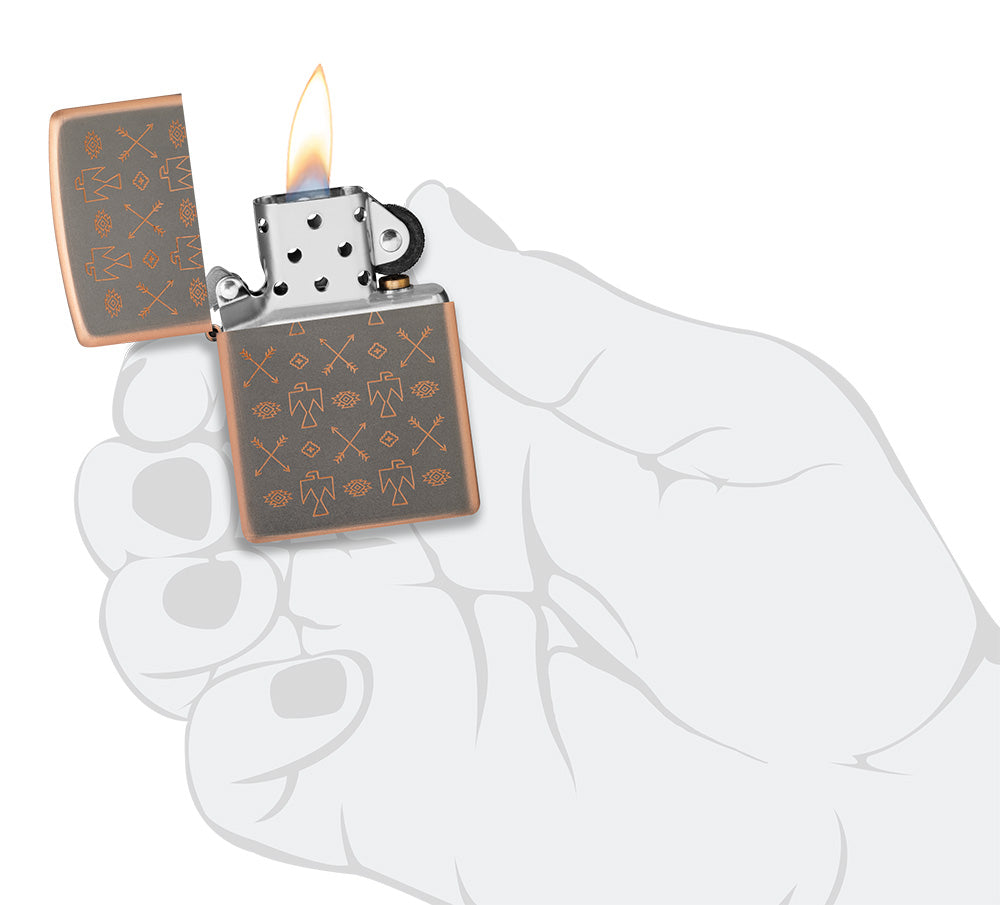 The Indian Pattern is a fascinating combination of rustic bronze color and precise laser engraving that impressively brings Native American symbols to life. The warm and inviting radiance of the rustic bronze color gives the lighter a special aura. The indigenous symbols are laser engraved in impressive detail for an authentic look. The fascinating aesthetics created by the combination of rustic bronze and laser engraving make this lighter a real eye-catcher.