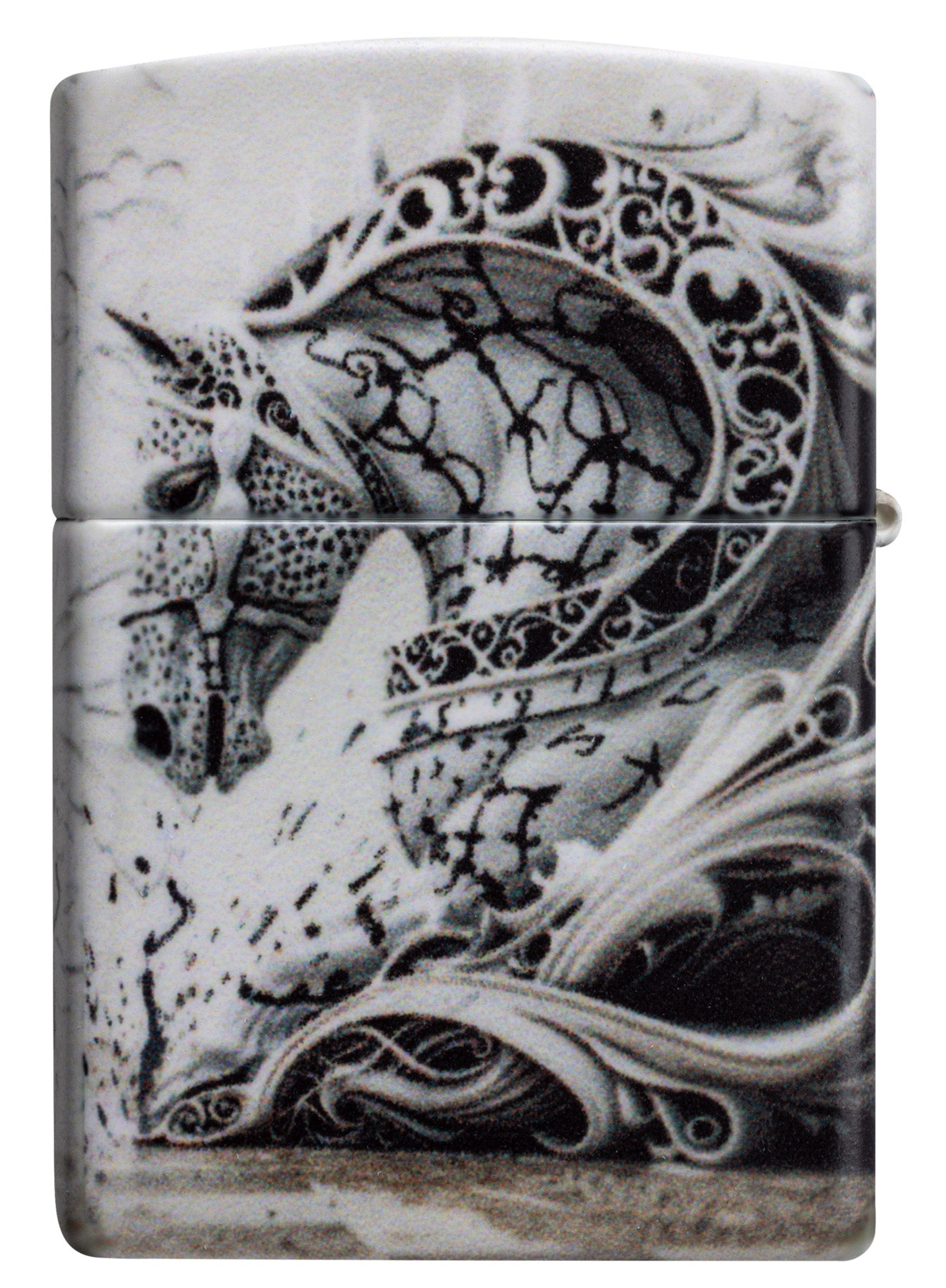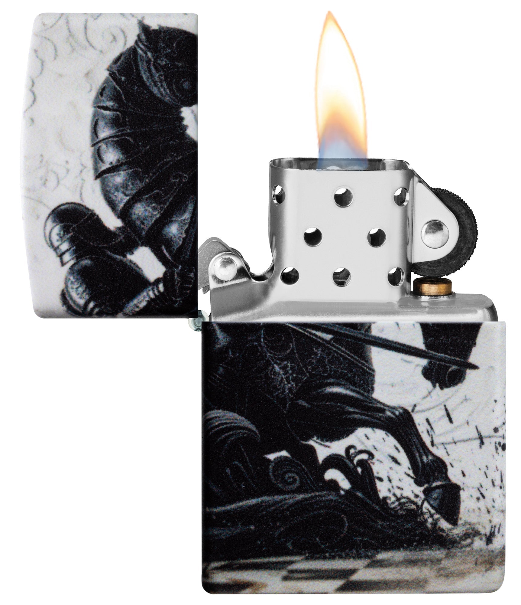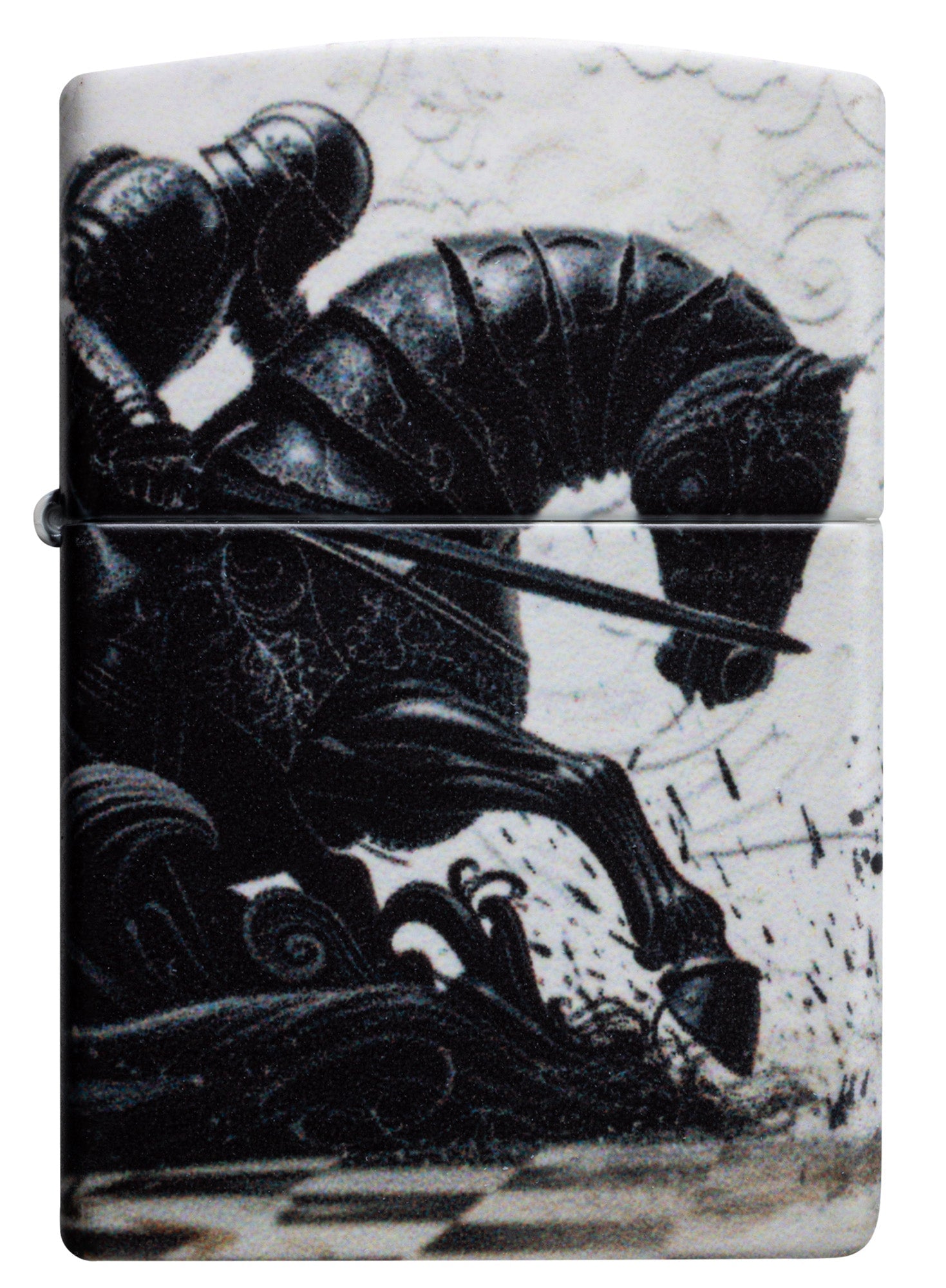Your favorite chess game comes to life on this classic 540° Color lighter. The seamless design features lifelike Knights in a thrilling battle and extends around all sides of the piece.