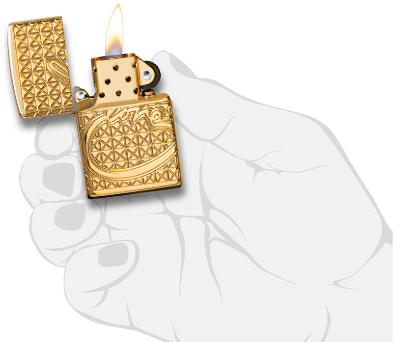 - Genuine Zippo windproof lighter with distinctive Zippo "click"