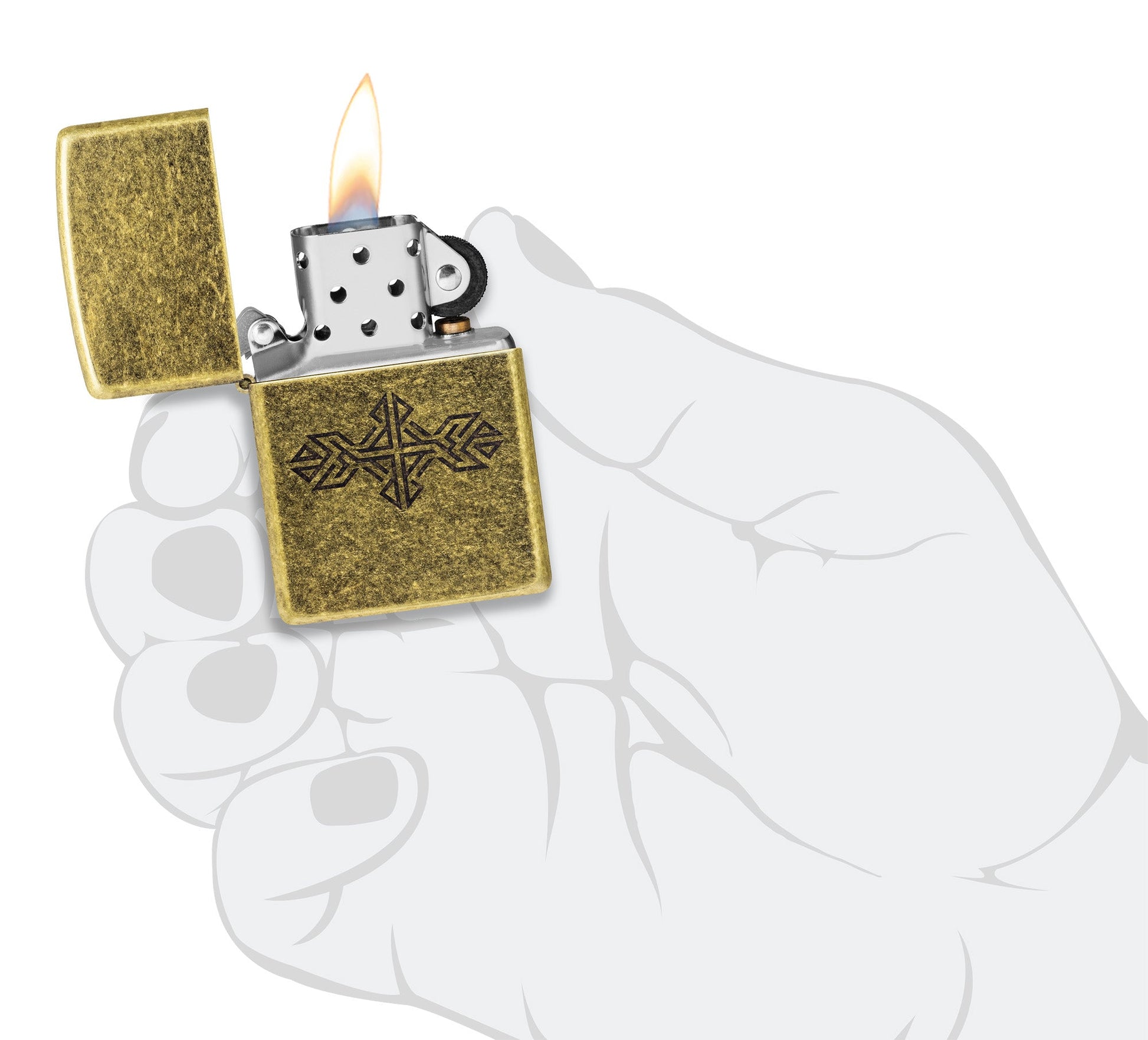 Inspired by ancient Norse runes, this classic Antique Brass lighter is etched with a simple medieval symbol in a subtle Lustre design.