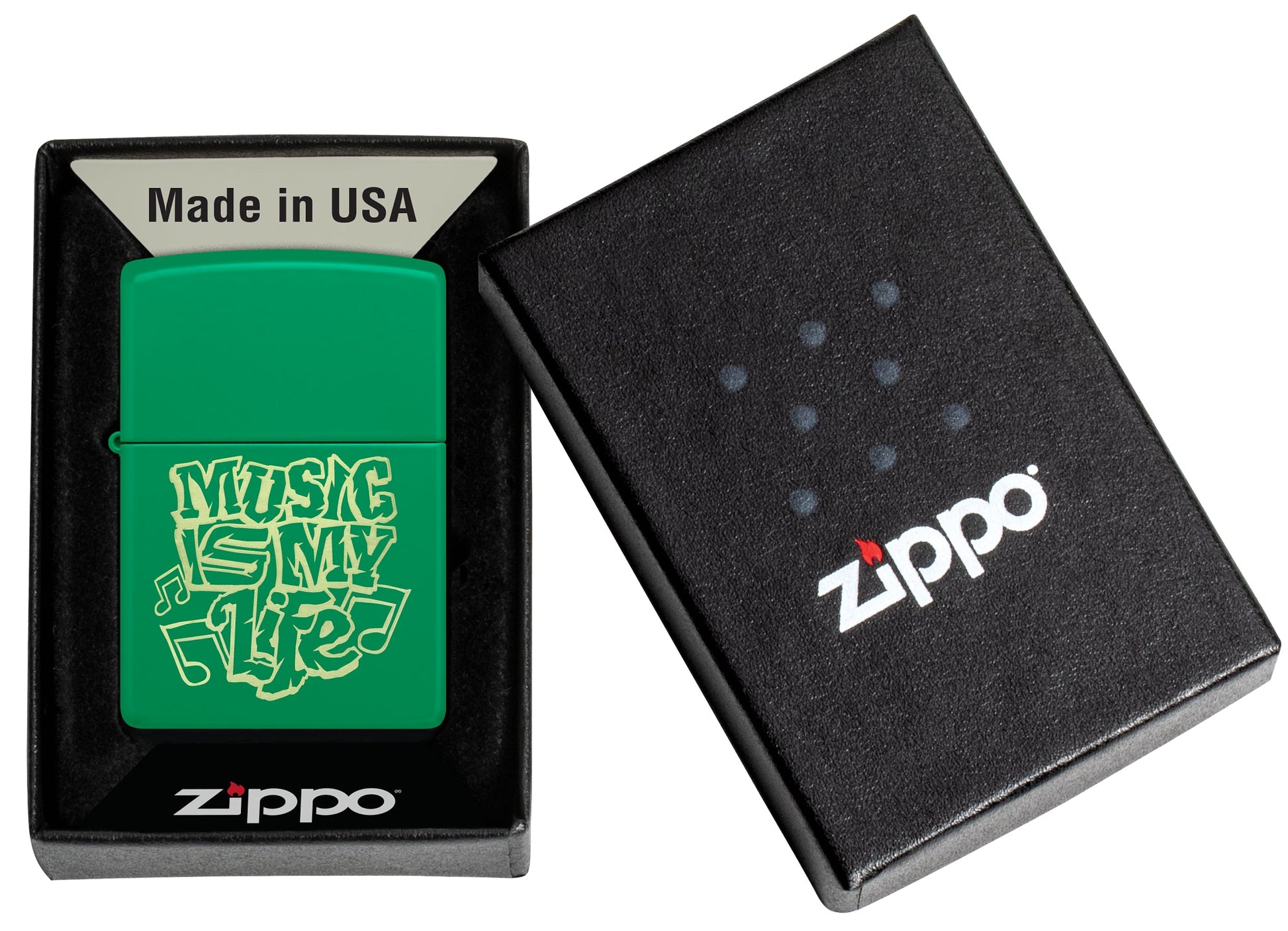 - Genuine Zippo windproof lighter with the unmistakable Zippo "click".