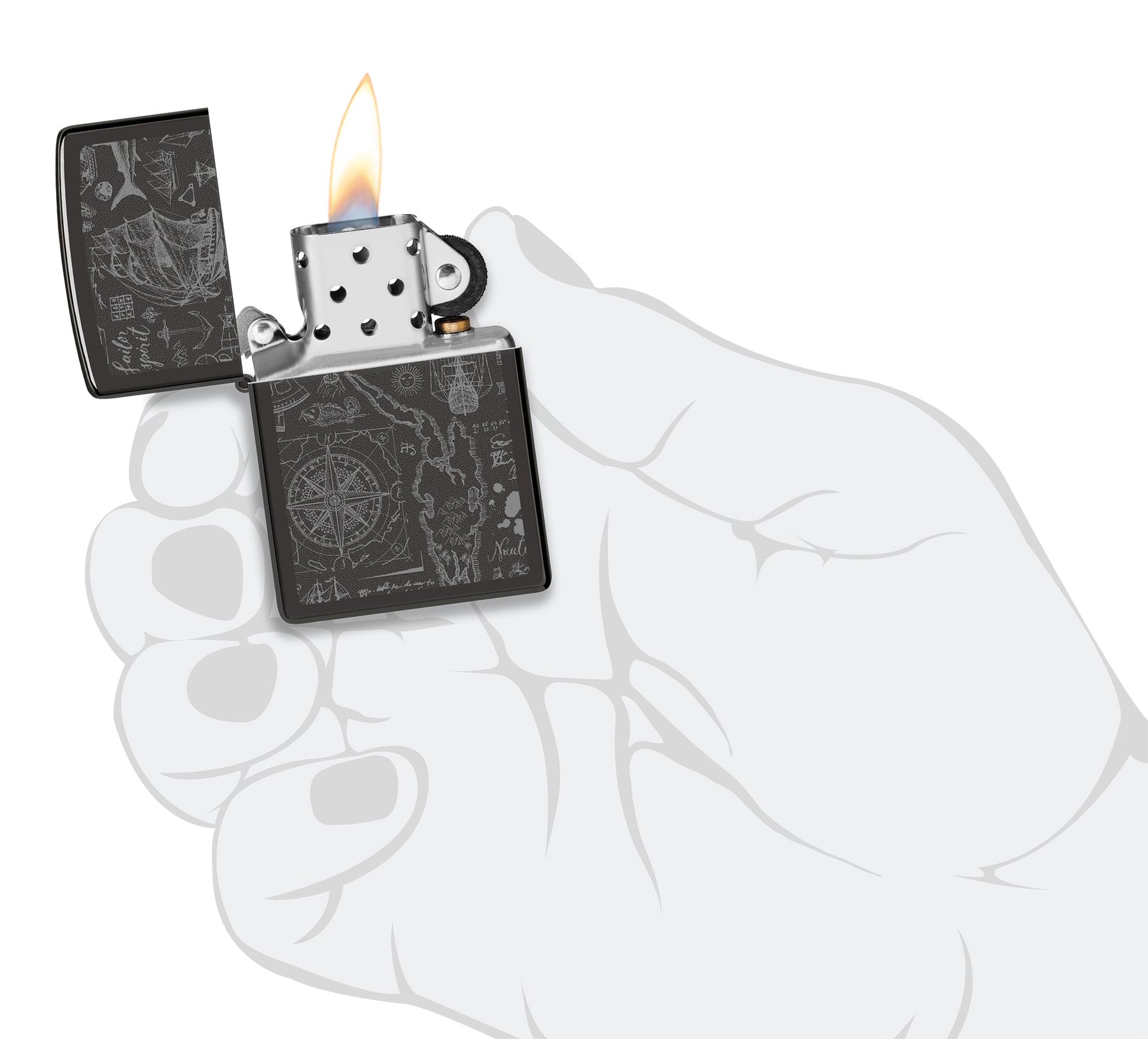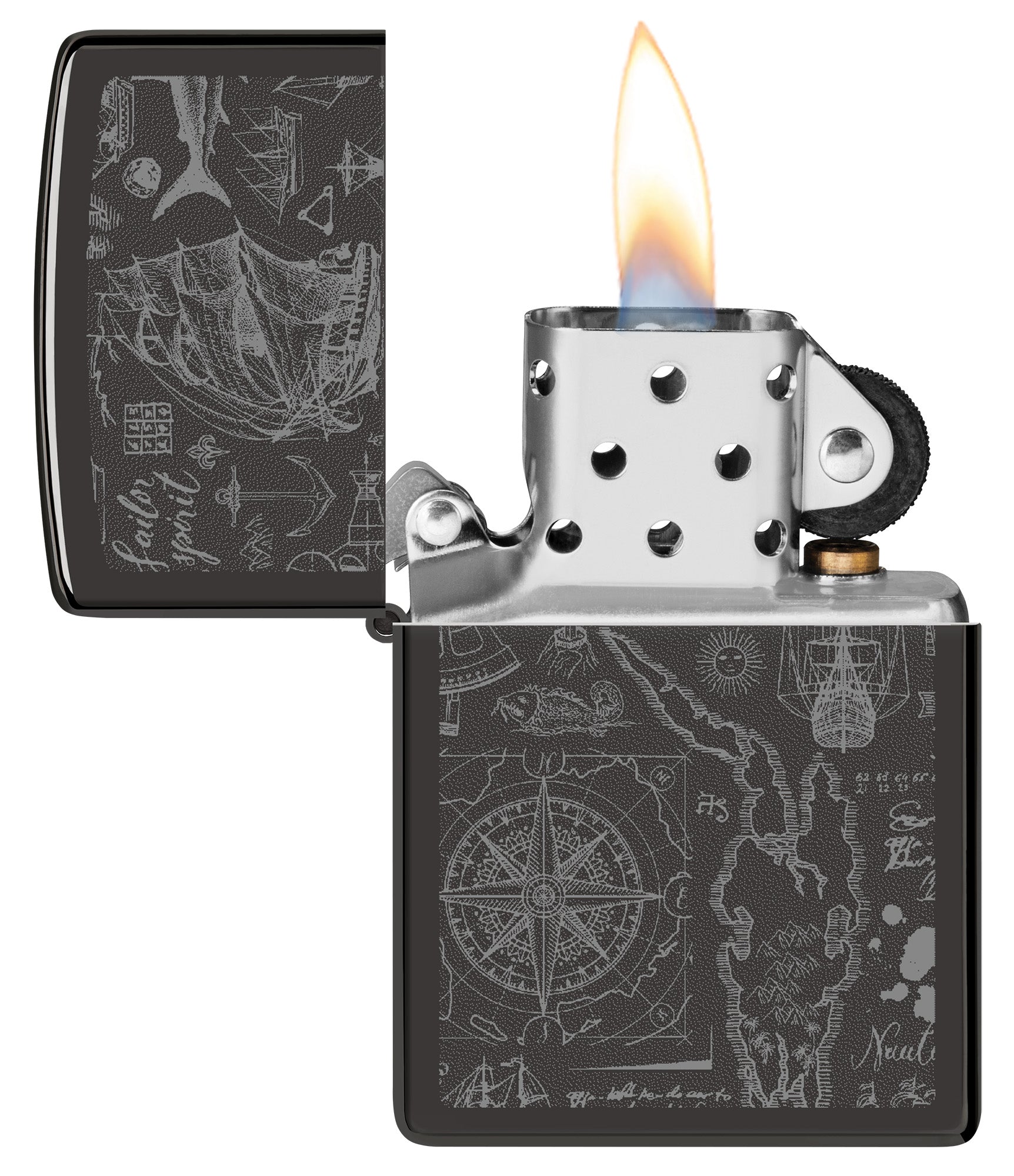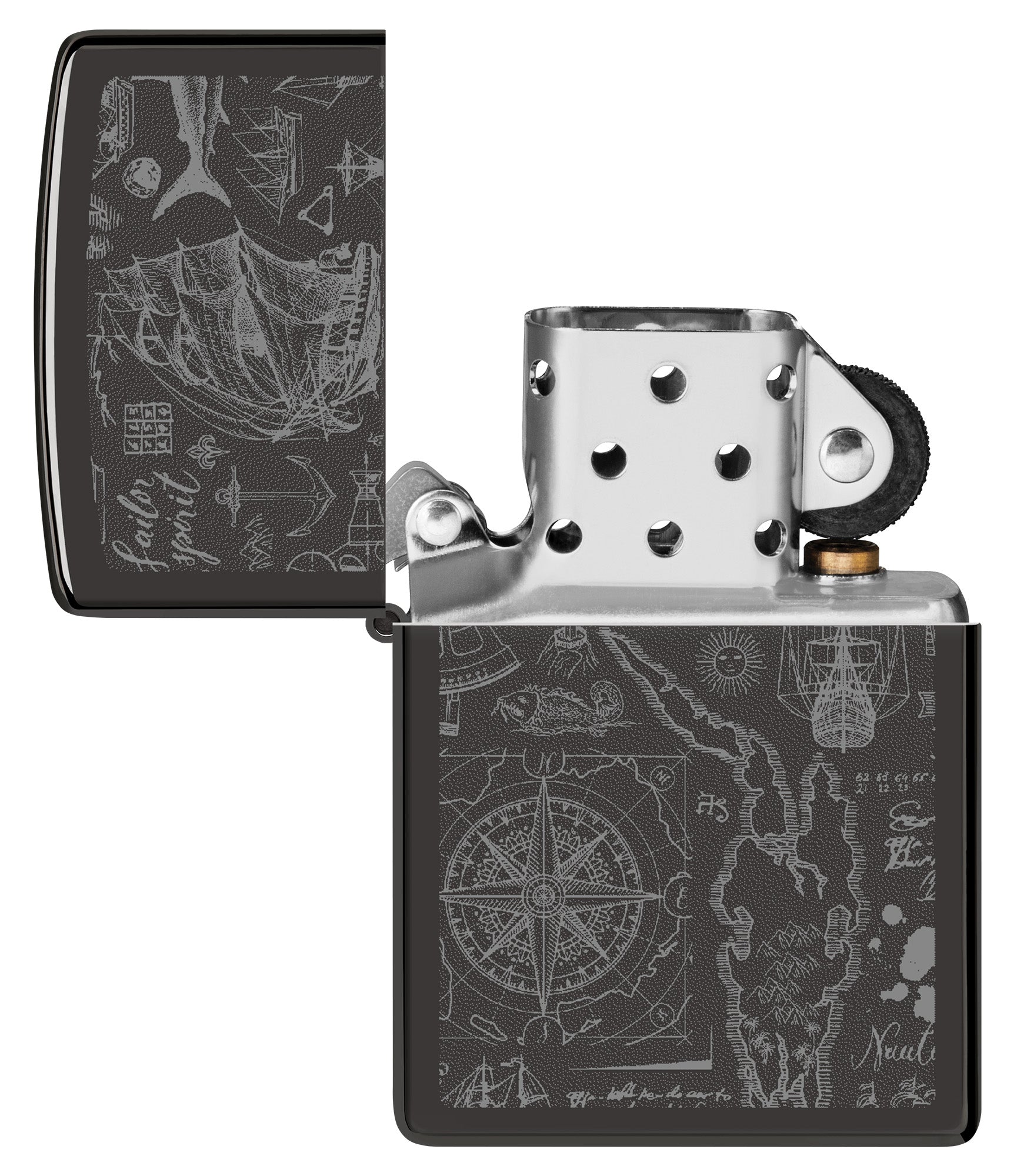 Travel the Seven Seas with this classic High Polish Black lighter. Ships, compasses, maps and other nautical elements fill the surface of the piece in a subtle Photo Image design.