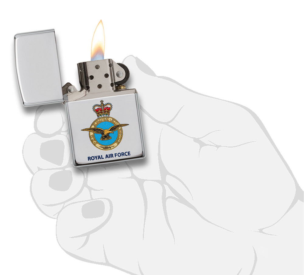 Lighter featuring the Royal Air Force logo. For over a hundred years the Royal Air Force has defended the skies of Britain and projected Great Britain’s power and influence around the world. Comes packaged in a gift box. For optimal performance, fill with Zippo lighter fuel.