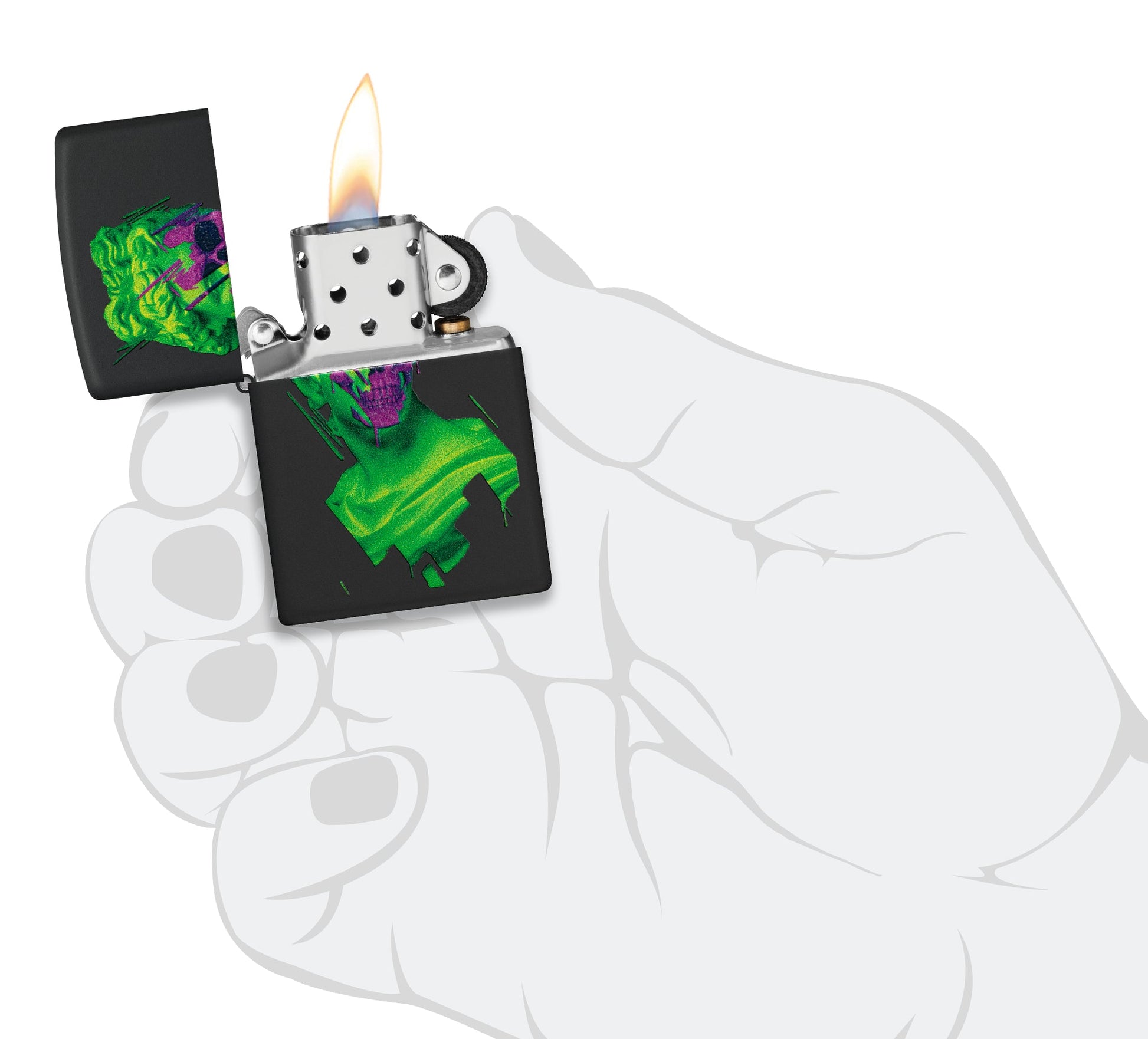 - Genuine Zippo windproof lighter with the unmistakable Zippo "click".