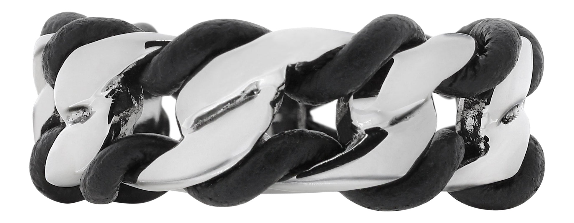 This ring pairs noble stainless steel, and casual leather. The stainless steel elements are pulled through by a thin leather strap. Featuring the Zippo logo on the inside of the ring.