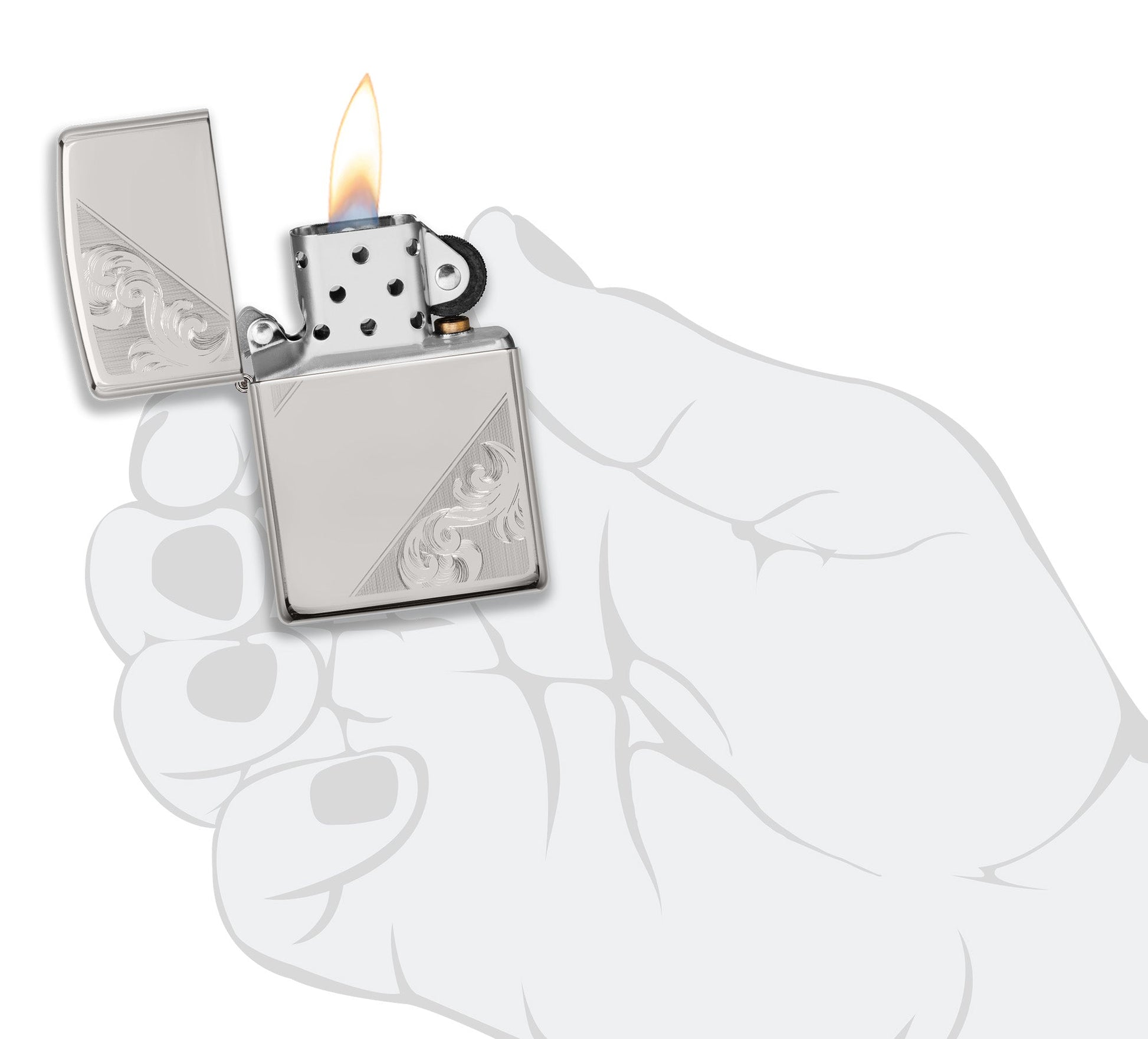 The intricate swirls and flourishes of this diagonal filigree design are created using Zippo’s classic Auto Engraving technique, lending highlights and depth to the High Polish Finish Sterling Silver Lighter. Crisp and clean effects are made with dimensional fill strokes that enhance the elegant jewelry design. Comes packaged in a gift box. For optimal performance, fill with Zippo lighter fuel.