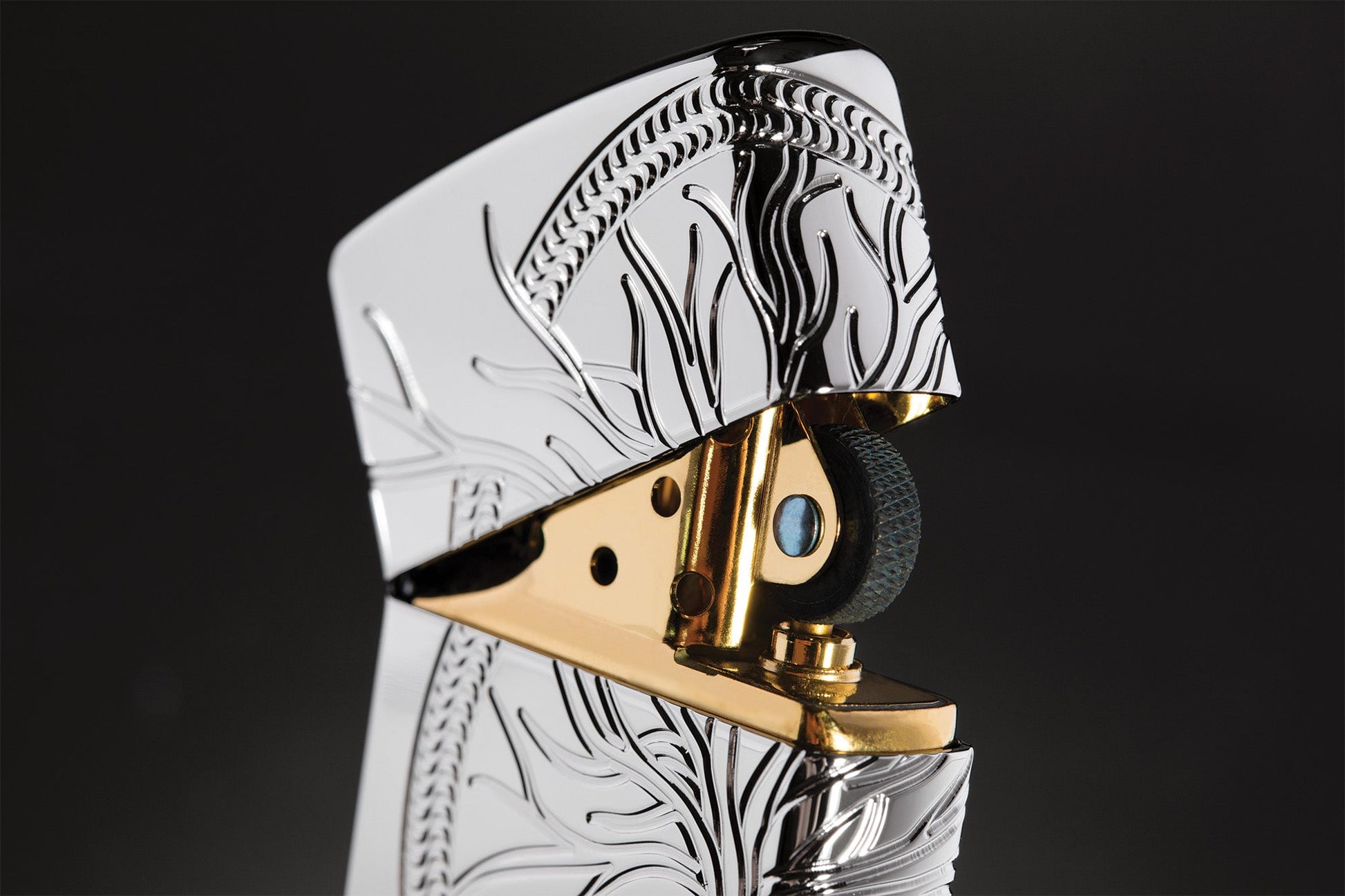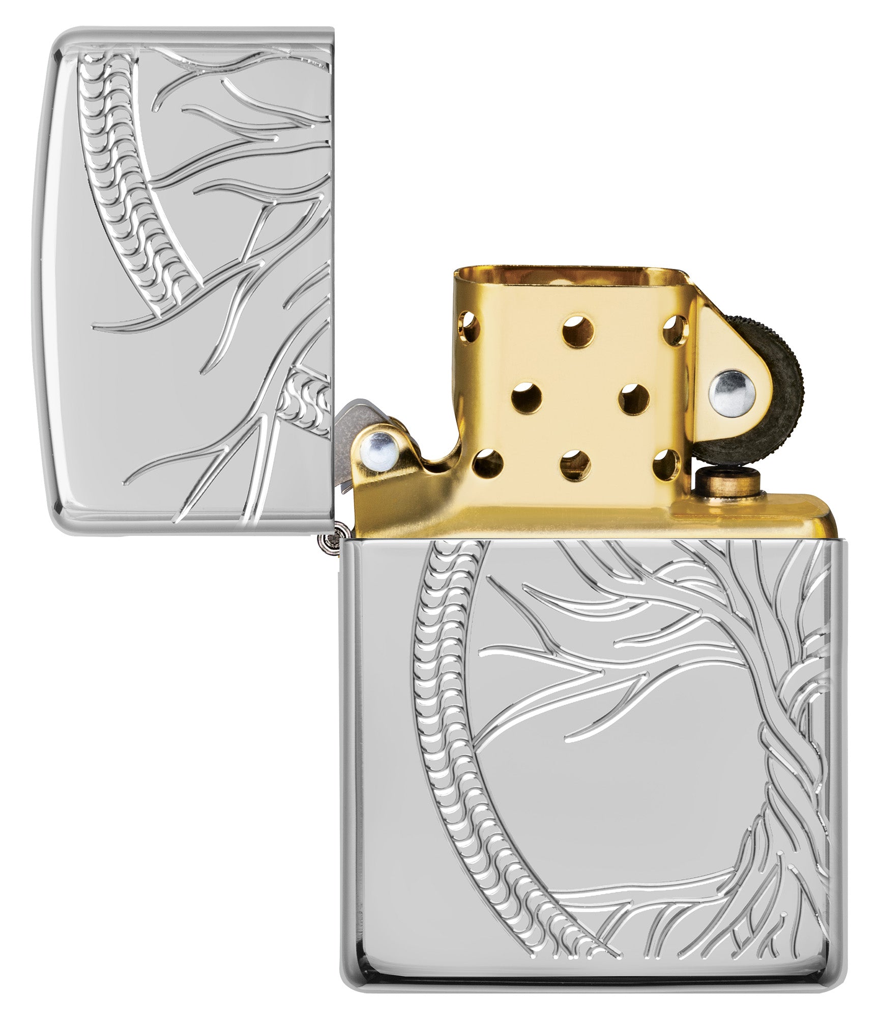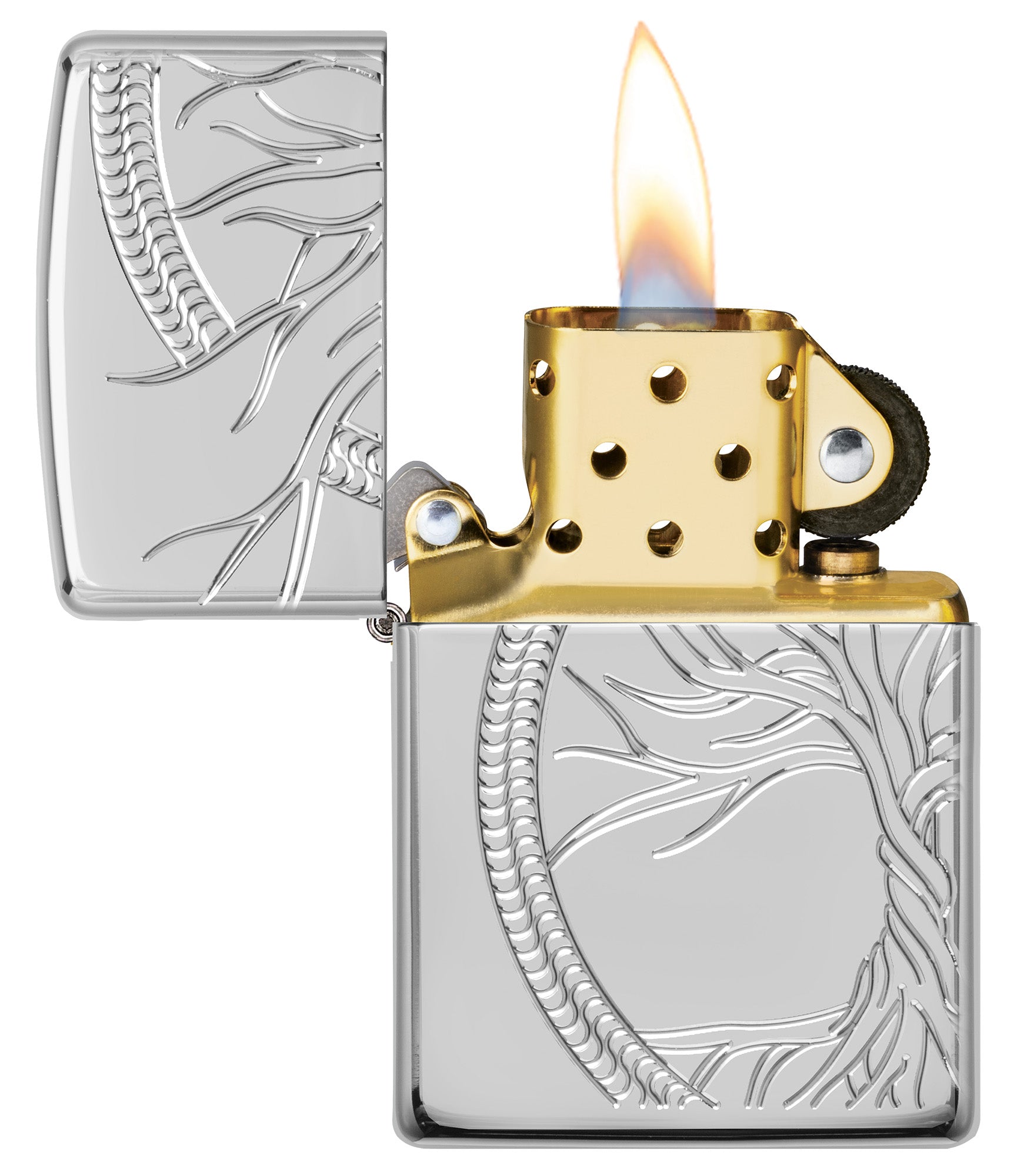 The Tree of Life is a perennially popular design theme amongst the diverse crowd of Zippo enthusiasts. Here, this ancient symbol of personal growth, strength, and natural beauty is engraved using Zippo’s MultiCut process around every side of this Armor® High Polish Sterling Silver Lighter, giving it a luxury look and textured feel. Comes packaged in a gift box. For optimal performance, fill with Zippo lighter fuel.