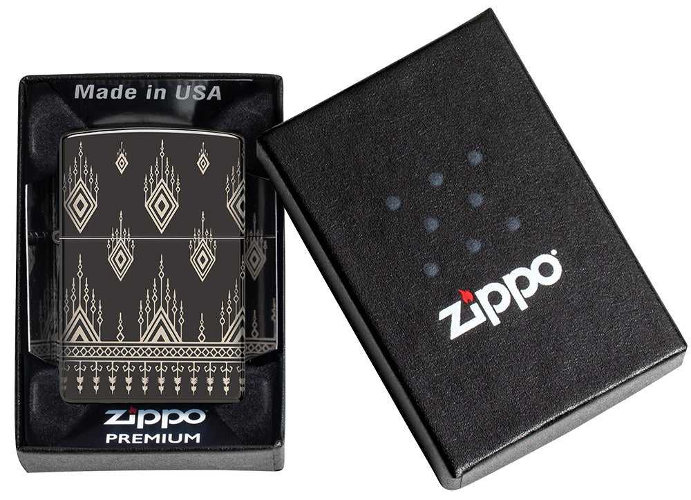 The highly polished black surface gives the lighter a classy and appealing aesthetic. The tribal pattern engraved on the lighter with the 360° laser engraving captures the essence of oriental design and gives the lighter a touch of exoticism and sophistication.