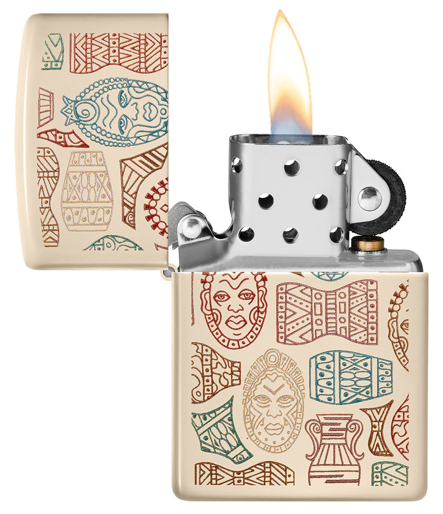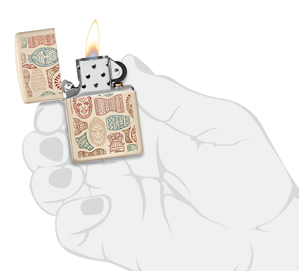 The sand-colored surface gives the lighter a natural yet modern aesthetic. The tribal-inspired symbol, which is depicted on the lighter in vibrant colors, radiates a powerful charisma and attracts everyone's attention.