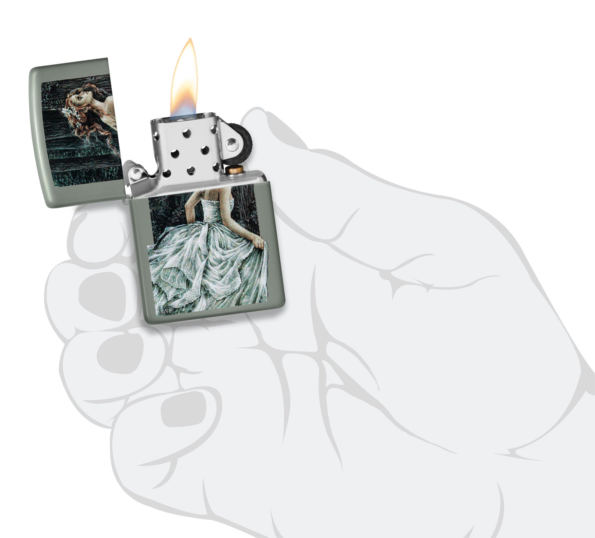 - Genuine Zippo windproof lighter with the unmistakable Zippo "click".